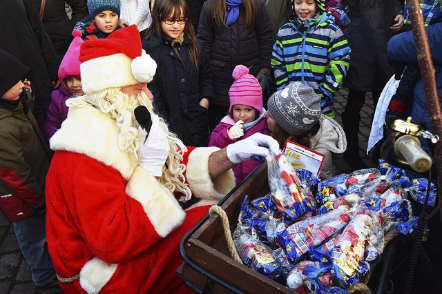 14.30 Uhr: Der Weihnachtsmann erscheint auf dem Markt und schenkt den Kindern kleine Aufmerksamkeiten. Er freut sich immer, wenn die Kinder Gedichte aufsagen und Lieder singen können.