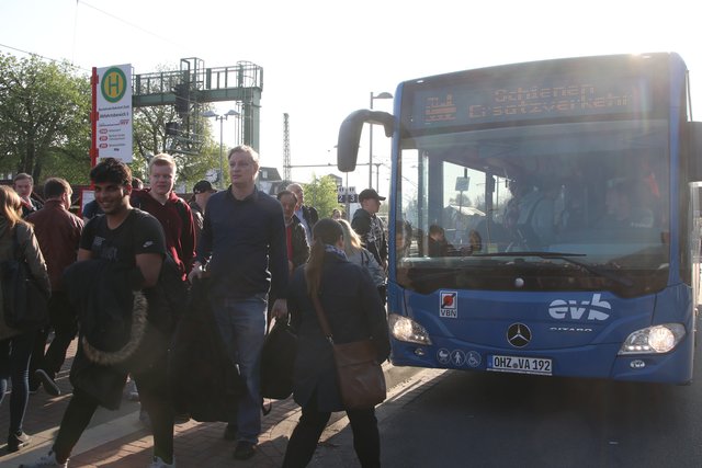 Die Bahnunternehmen hatten einen Schienenersatzverkehr mit Bussen und Taxen organisiert. Doch der funktionierte nicht reibungslos. So steuerte der Ersatzbus der EVB gar nicht den Apenser Bahnhof an. Die Pendler, die dort warteten, konnten dem Bus nur noch hinterherschauen, als dieser etwa 200 Meter entfernt auf der Hauptstraße vorbeifuhr, ohne zum Bahnhof abzubiegen. Da es seitens der EVB keine Infos gab, standen nur eine Handvoll Bahnreisende an der richtigen Ersatzhaltestelle.