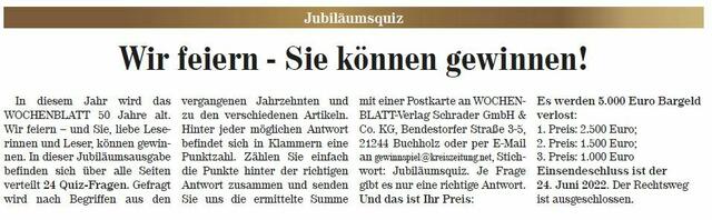 Jubiläumsquiz / 50 Jahre WOCHENBLATT