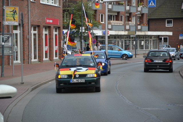 Die Polizei drückt ein Auge zu. Ein Aufruf an die Teilnehmer eines Auto-Korso: Bitte an die Sicherheit aller Teilnehmer und Passanten denken! Denn die Freude über erfolgreiche Spiele der deutschen Elf soll im Vordergrund stehen.