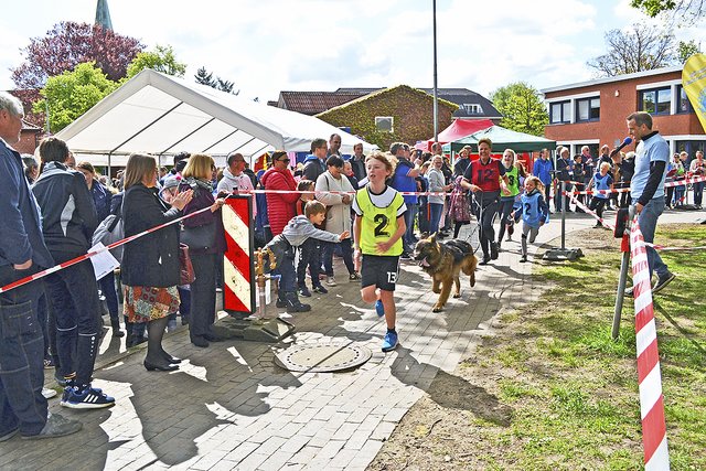 - Margrit Wendt, stellvertretende Schulleiterin des Gymnasiums am Kattenberge, lief mit Schäferhund Esmo