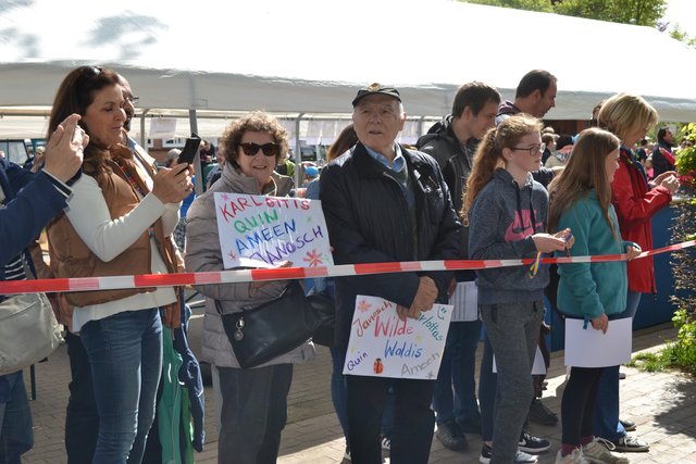 Besondere Aufmerksamkeit erregten Margrit Wendt, stellvertretende Schulleiterin des Gymnasiums am Kattenberge, die mit Schäferhund Esmo startete und für jede Runde 235 Euro in die Spendenkasse holte, und Johann V. aus Nenndorf, der "Helpster-King" wurde. Der Elfjährige, der selbst an Knochenkrebs erkrankt war, schaffte trotz einer Endoprothese und an Krücken sagenhafte fünf Runden. Unterstützt wurde der Junge, dessen Schicksal bundesweit für Schlagzeilen sorgte, von ca. 180 Sponsoren aus dem gesamten Bundesgebiet, darunter auch Hertha-BSC-Spieler Fabian Lustenberger. Gemeinsam mit der "Helpster-Queen", die noch ermittelt werden muss, wird Johann vor den Sommerferien anlässlich der Scheckübergabe gekrönt.