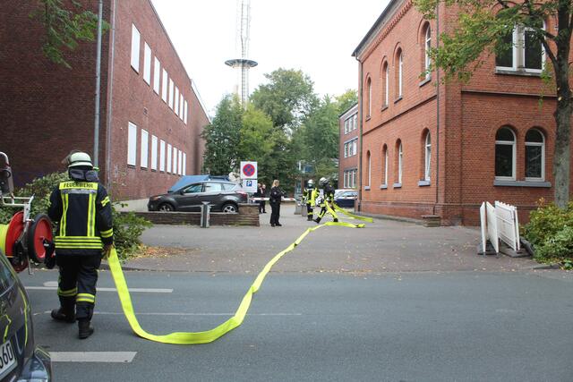 Die Feuerwehr Buxtehude war sehr schnell mit einem größeren Aufgebot an Einsatzfahrzeugen vor Ort. Nach gründlicher Suche stand fest: Es gibt keinen Brand. Vermutlich sind die Rauschwaden durch Reparaturarbeiten an der Klimatechnik im Keller des altehrwürdigen Backsteingebäudes entstanden. Alle Mitarbeiter hatten das Gebäude verlassen und alle Verhandlungen wurden sofort unterbrochen. Nach gut 30 Minuten war der Einsatz für die Feuerwehr beendet.