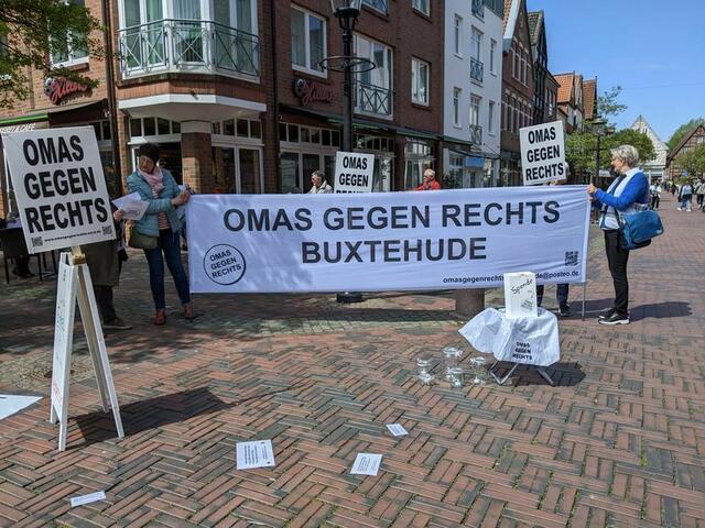 Die OMAS GEGEN RECHTS haben sich über zahlreiche Gespräche mit PassantInnen aus Buxtehude und anderen Städten gefreut.