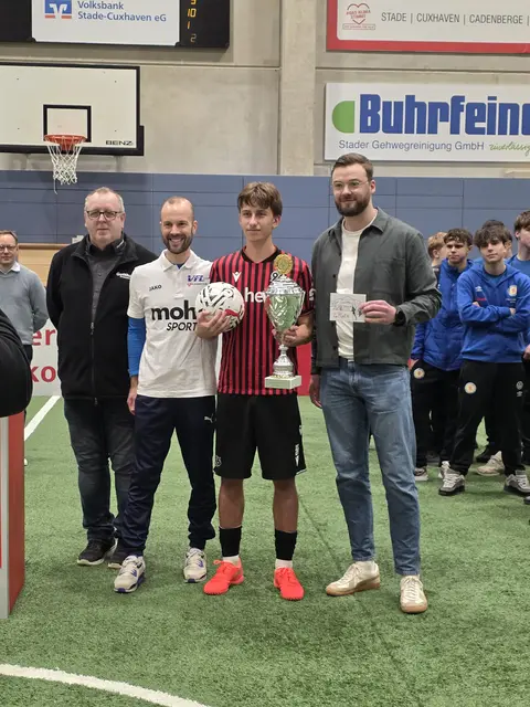 Stade. Der Wintereinbruch stellte die Organisatoren des VfL Güldenstern Stade vor große Herausforderungen. Mehrere Mannschaften sagten kurzfristig ab, das geplante U15-Turnier und der Wohnstätte Ladies-Cup mussten gestrichen werden. Das sportliche Herzstück des Stader Hallenzaubers, der Puma Mohr Sports Cup der U17, konnte am Sonntag jedoch durchgeführt werden – und bestätigte erneut seinen hohen Stellenwert im Nachwuchsfußball.