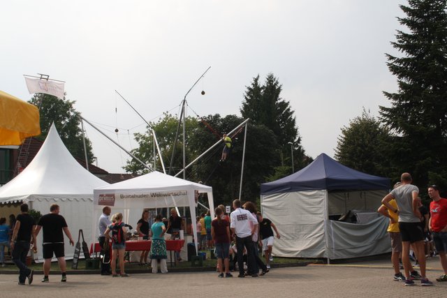 Mit einem spektakulären Familienfest feierten die Buxtehuder Stadtwerke am vergangenen Samstag ihr 125-jähriges Bestehen, 100 Jahre Wasserversorgung und 150 Jahre Gasversorgung. Rund 5.500 Gäste besuchten die Veranstaltung am Tag, um an verschiedensten Führungen über das Gelände teilzunehmen und sich nach Lust und Laune zu amüsieren. Das Programm reichte vom Klettern im Hochseilgarten über Bungeetrampolin bis zum Kajakfahren. Alle Angebote waren kostenfrei. Lediglich für das Angebot der Gastronomie, das von der Scampi-Pfanne über Currywurst bis zu Crepes und Getränken reichte, mussten die Besucher einen geringen Betrag bezahlen. Ein weiteres Highlight war das Flower-Power-Konzert der Buxtehuder Allstars am Abend, das für Stadtwerke-Kunden ebenfalls kostenfrei war. und von weiteren 1.500 Gästen besucht wurde.