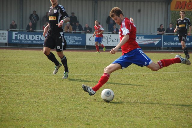 Schon in der vierten Minute landete der Ball per Vorlage von Nico Mau bei Daniel Gröne, der flugs das 1:0 markierte. Nur wenig Sekunden später dann das Unfassbare für die Anhänger der Südkehdinger: Gäste-Torjäger Thorben Schierholz steigt hoch, vollstreckt zum Remis.