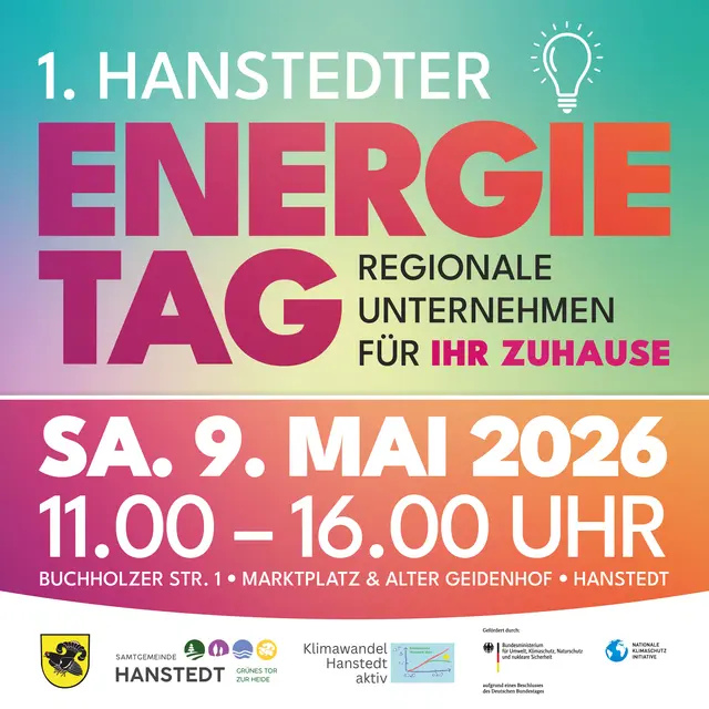Der erste Hanstedter Energietag bringt regionale Unternehmen, Energieexperten und Bürger zusammen. Auf dem Marktplatz und im Alten Geidenhof in Hanstedt dreht sich am Samstag, 9. Mai, 11 bis 16 Uhr, alles um nachhaltige Energielösungen, moderne Heiztechnik, Strom vom eigenen Dach und Fördermöglichkeiten.