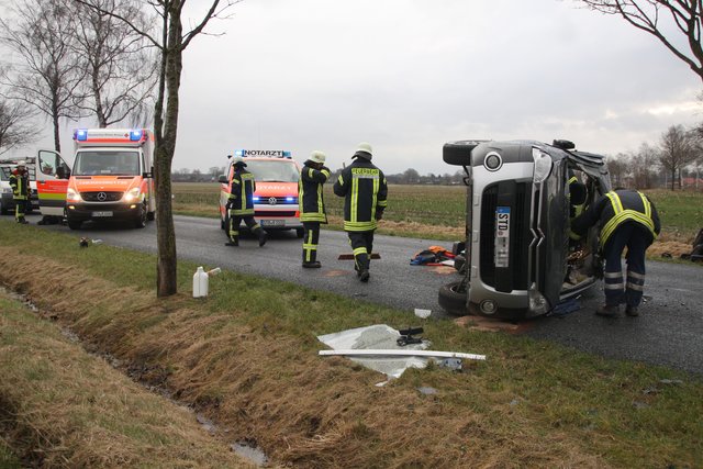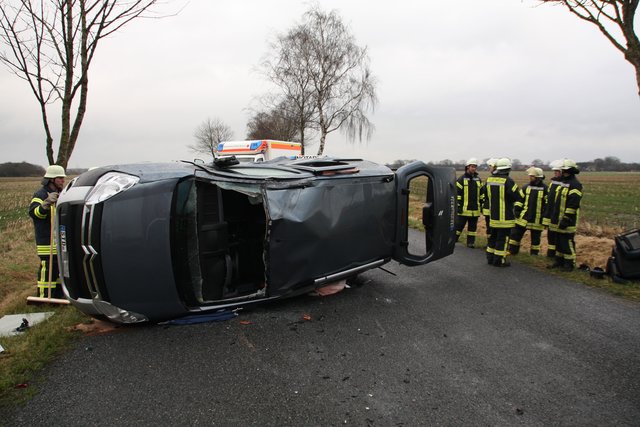 Das Auto überschlug sich mehrfach und blieb letztendlich auf der Seite liegen | Foto: Feuerwehr Fleestedt