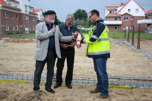 Beim ersten Spatenstich (v. li.): Bauleiter Marc Lorenzen, Geschäftsführer Klaus-Dieter Ehlen und der Tostedter Betriebsleiter Matthias Kapahnke | Foto: bim