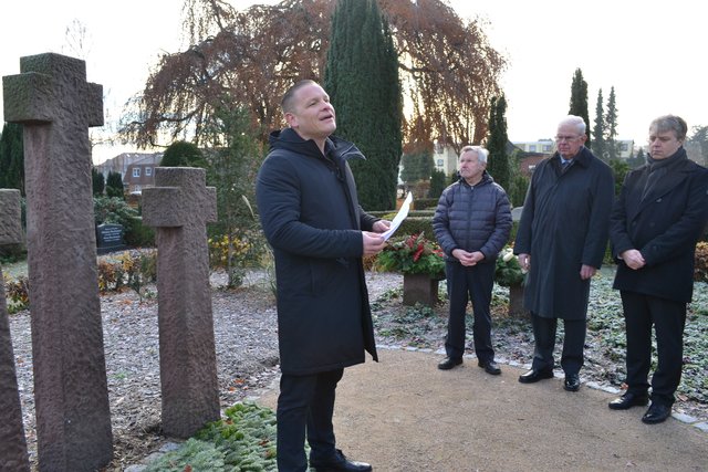 Die Initiatoren der Tostedter Stolperstein-Verlegung Adolf Staack, Katrin Kludas (v. re.) und Manfred Falke (2. v. li.) mit Bürgermeister Gerhard Netzel (li.) und Samtgemeinde-Bürgermeister Dr. Peter Dörsam | Foto: bim