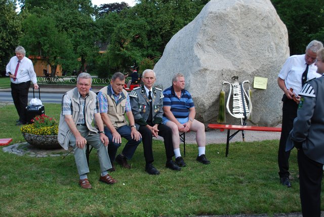 Die Initiatoren der Tostedter Stolperstein-Verlegung Adolf Staack, Katrin Kludas (v. re.) und Manfred Falke (2. v. li.) mit Bürgermeister Gerhard Netzel (li.) und Samtgemeinde-Bürgermeister Dr. Peter Dörsam | Foto: bim