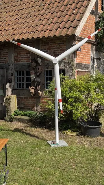 Viele interessierte Gäste fanden sich ein zum Sommerfest des gemeinnützigen Vereins „Lebensraum Otter“ am Samstag, dem 09.08.2025. Der Verein will eine Bebauung des „Hausbergs“ der Gemeinde Otter mit Windenergieanlagen abwenden. Der Hingucker der Veranstaltung war das maßstabgerechte Modell einer Windkraftanlage. Im Verhältnis 1: 100 verdeutlicht das Modell das Größenverhältnis Windrad (ca. 270 m) zu einem Wohnhaus (ca. 8,5 m). Das ist auf dem Foto neben dem Windrad unten links zu sehen. Dies...