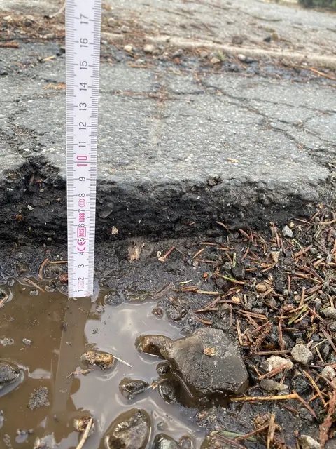 In der letzten Zeit wurden in Winsen viele Schlaglöcher ausgebessert, aber beim Roydorfer Weg ist man anscheinend noch nicht angekommen, denn seit Jahren wird die Straße immer unbefahrbarer. In Höhe der "Winsenia" ist die Straße mit Schlaglöchern verschiedener Größen übersät, was bei dem ganzen LKW-Verkehr kein Wunder ist. Dennoch sollte man etwas dagegen unternehmen. Als ich einige Schlaglöcher ausgemessen habe, staunte ich nicht schlecht, als ich sah, dass einige tiefer als 10 cm sind....