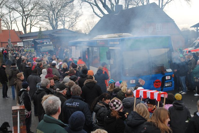 Traditionell waren auch in diesem Jahr wieder zehntausende Besucher zum Großereignis des örtlichen Faslams-Clubs nach Toppenstedt gekommen, um mit mit rund 25 Bau-, Fuß- und Gastgruppen aus Hoopte, Fliegenberg und Hanstedt Faslam zu feiern. Thematisiert wurden dabei unter anderen Miami Vice, Barby, ADAC, Disneyland und die Heinzelmännchen.